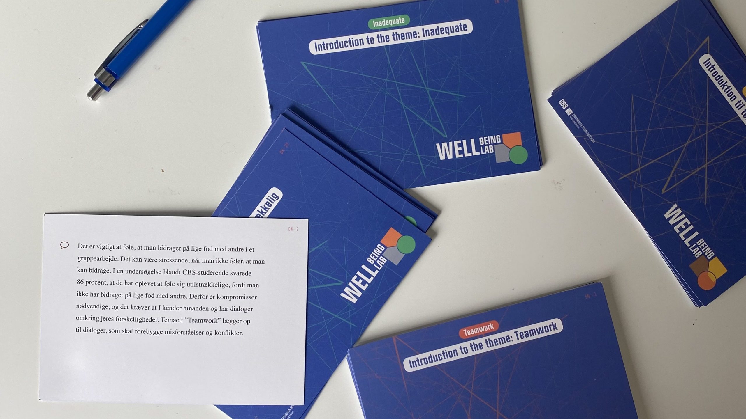 The instructor selects the theme to be played in class. “New to CBS” focuses on challenges of being new at university, “Teamwork” enables working with enhancing group work, and “Inadequate” addresses emotional difficulties to foster a more supporting atmosphere in the class or group.